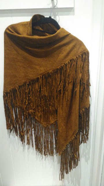 PONCHO EM CAMURÇA COM DETALHE DE FRANJAS. TAMANHO ÚNICO.