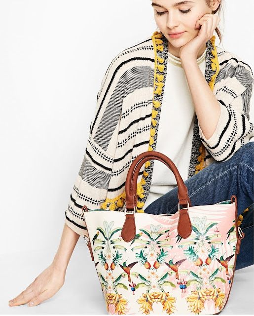 Mala branca com um estampado muito tropical e... DESIGUAL!